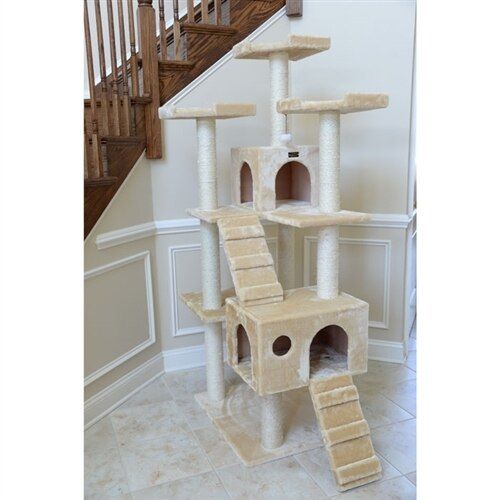74-Inch Multi-Level Real Wood Cat Tree Large Cat Play Furniture With Scratching Posts, Large Platforms, Beige by Armarkat